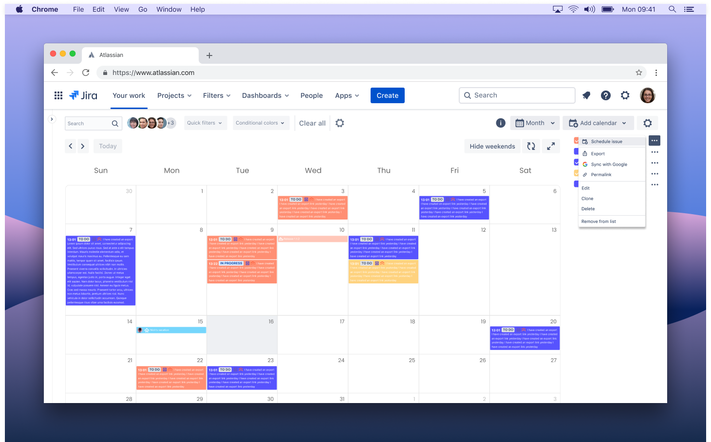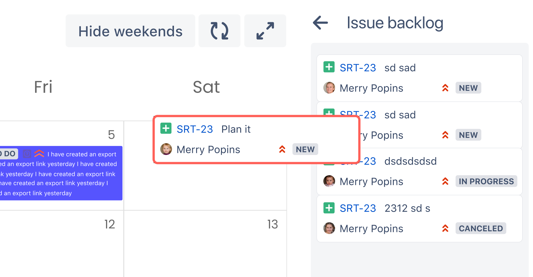 To open the backlog, call the calendar dropdown and click "Schedule Issue."