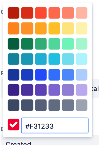 At the bottom of the popup, there is a field for entering the color hex code.