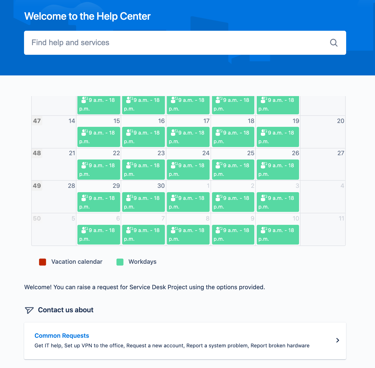 DC: Calendars on Customer Portal (Jira Service Management Calendar integration)