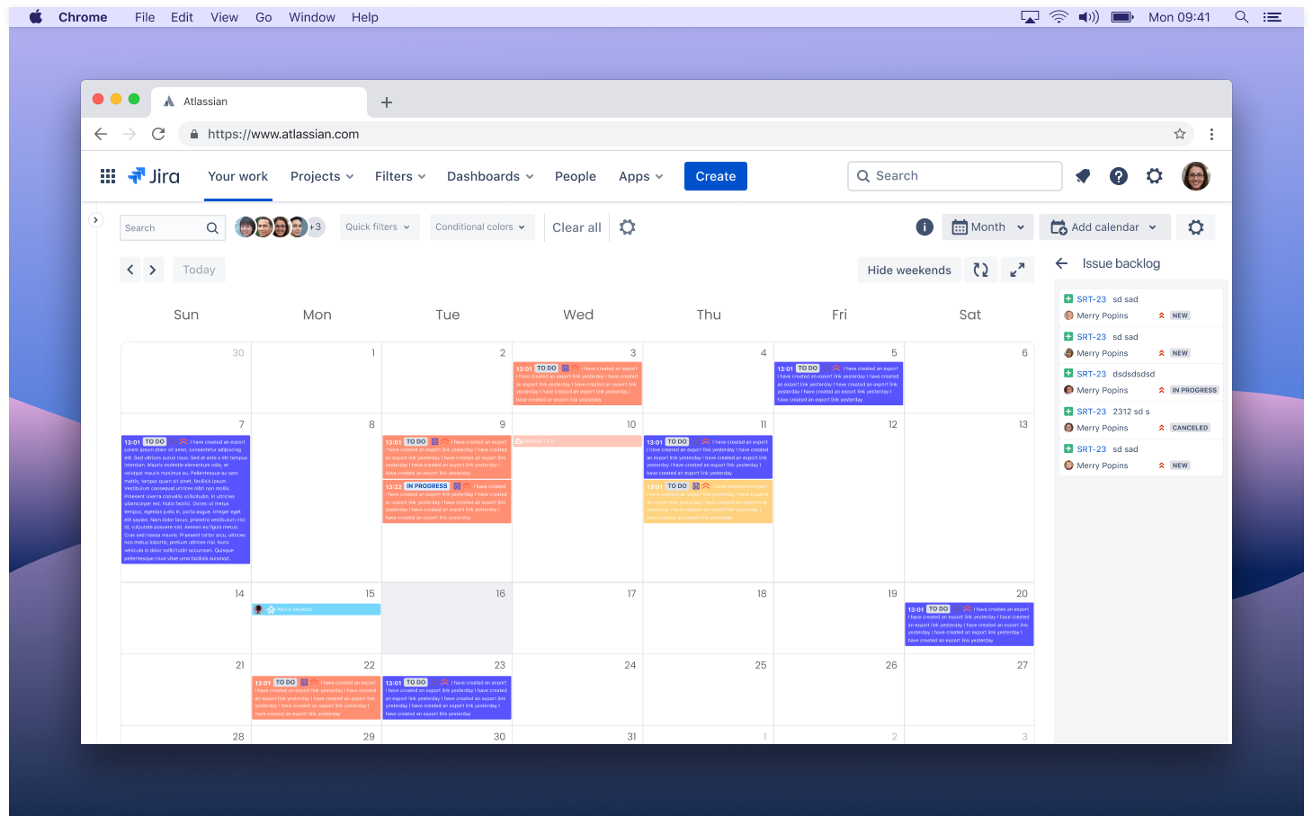 3. Drag an issue to the calendar grid.