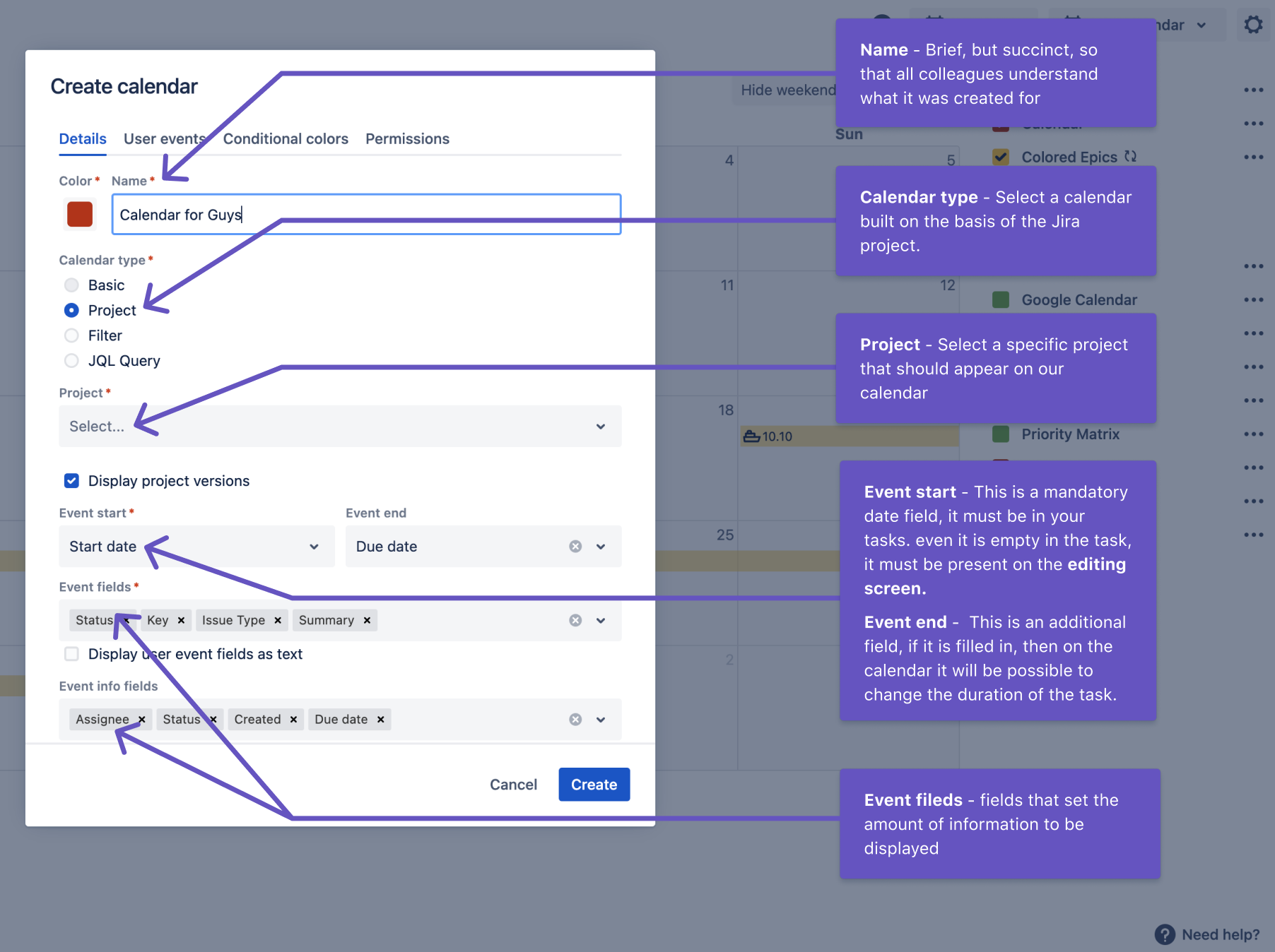 Calendar for Jira is an extension that allows you to display project issues in a calendar view, as well as add any additional events such as vacations, sprint planning, business trips, meetings, and so on.
