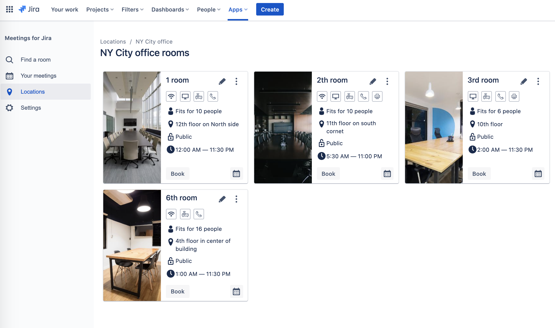 Find the office where you are planning the meeting, then find a suitable room.