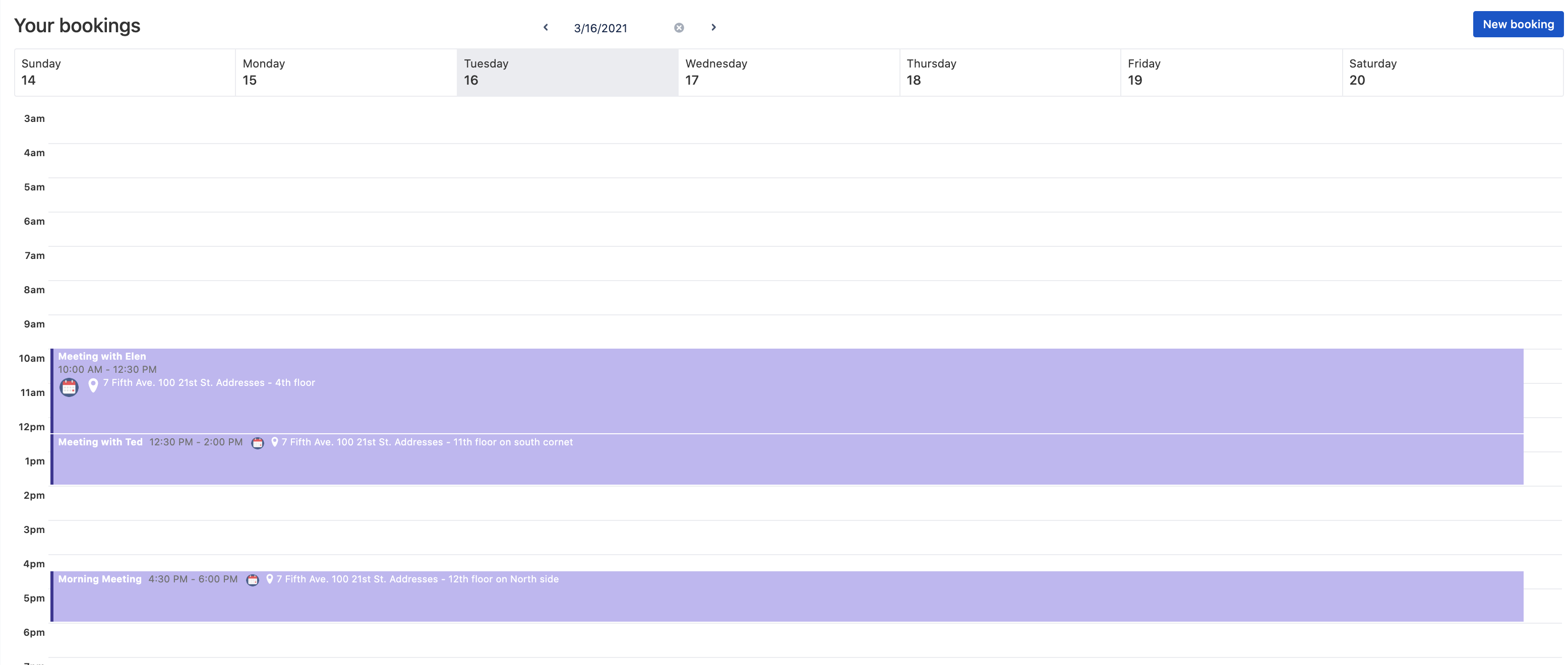 You can create an appointment simply by clicking on the calendar, or by clicking on the "new booking" button.“Locations" screen: