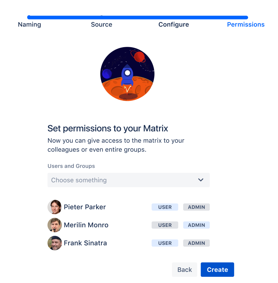 Click “Create matrix" or Click “Select existing" to select a matrix already created for you
