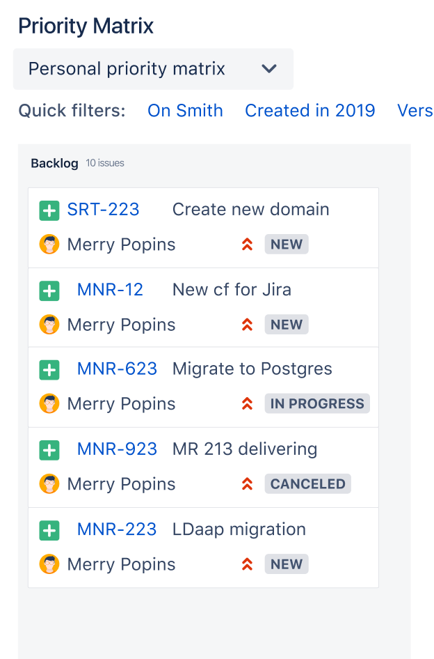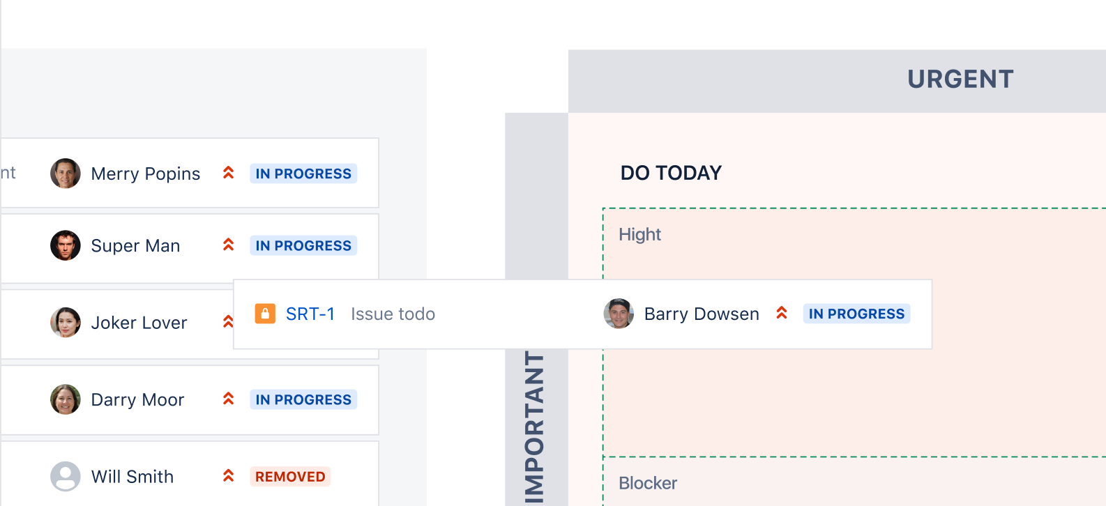 Also, task cards briefly display information on status, author, and initial priority. So for quick and accurate planning, there is no need to fall into each task